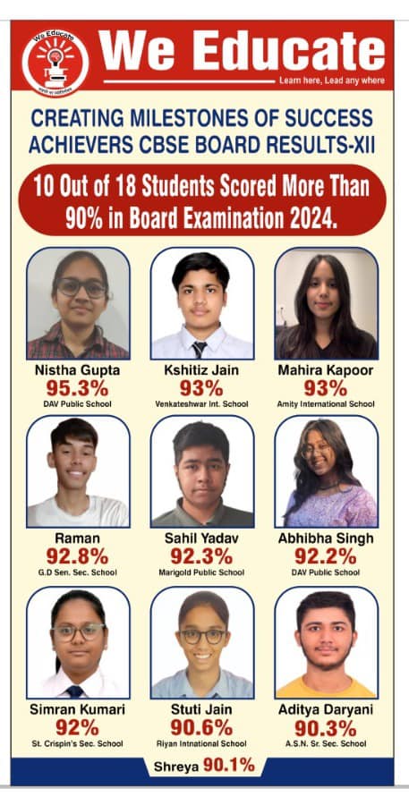 We Educate offers the best 12th coaching class in Gurgaon for board exam preparation, which covers all the topics in physics, chemistry, biology, and mathematics to prepare students to secure outstanding results.